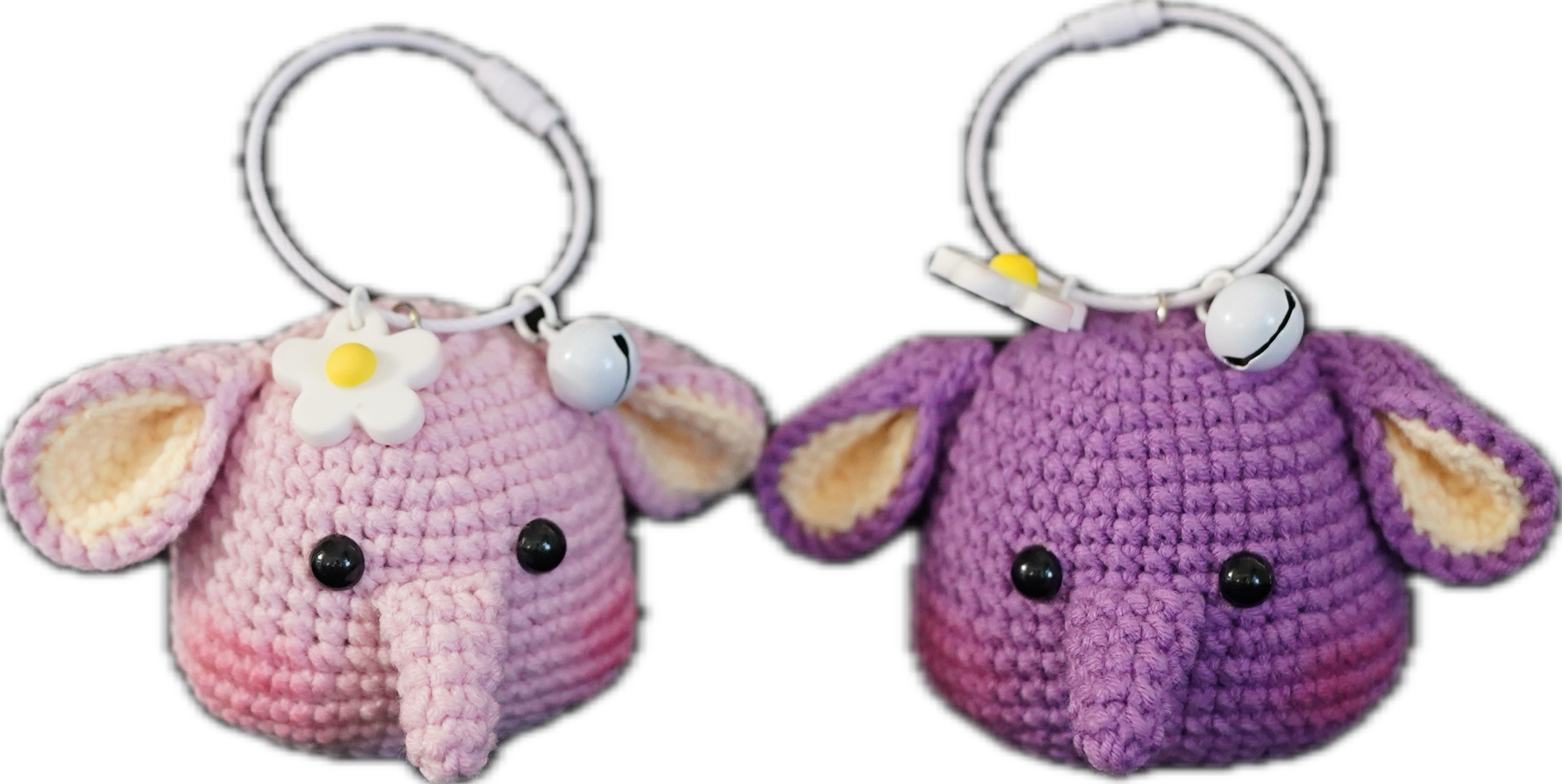 A charming handmade crochet elephant face featuring big floppy ears and a long, cute trunk. Soft, lightweight, and perfectly sized for your keys or bag, this minimal design adds a sweet touch without the bulk of a full body. A unique and adorable accessory for elephant lovers and fans of simple handmade pieces.